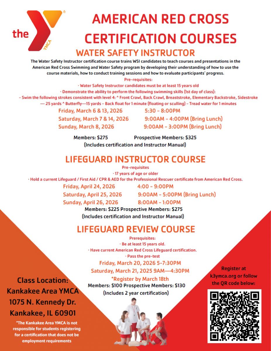 The YMCA is the nationwide leader in helping people of all ages feel safe in the water. Each year, the Kankakee Area YMCA teaches thousands of children and adults to swim and certifies a large percentage of area lifeguards. From swim lessons to birthday pool parties to swim team, you'll find water fun at the Y.