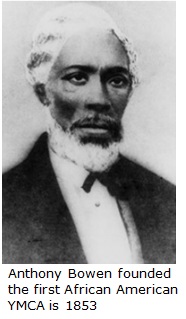 • In 1853, the first YMCA for blacks was founded by Anthony Bowen, a freed slave, in Washington, D.C.